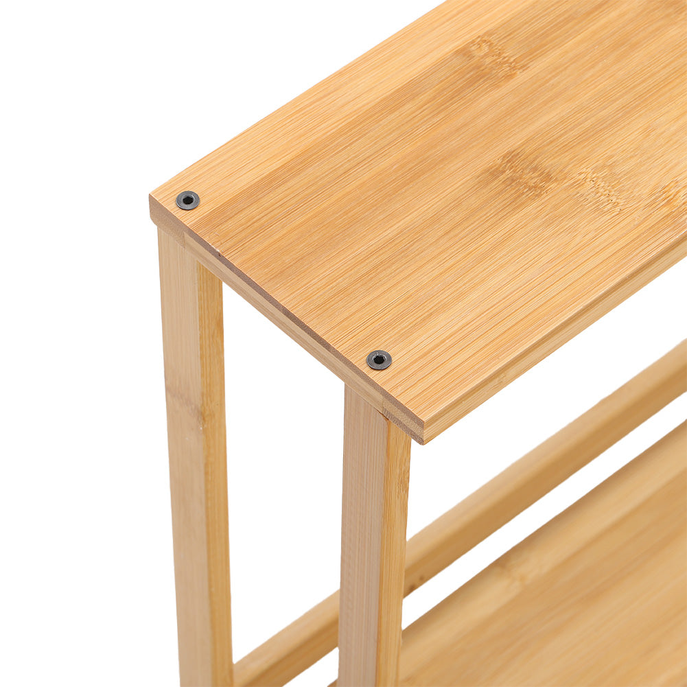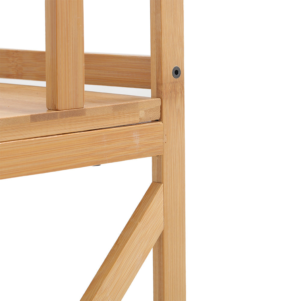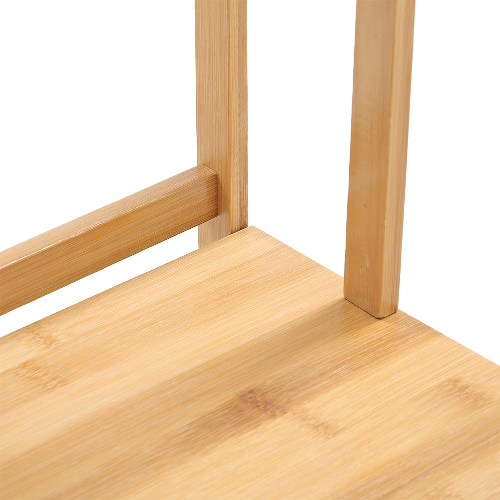With the 2-tier freestanding spice rack organizer, you can create extra room for seasoning storage and organization in your kitchen. Comes with a 2-tier design, there is enough space to put your kitchen appliance on the middle shelf and microwave on the bottom. There is also a top shelf for different kinds of spice or seasoning jars. The shelves are made of durable natural bamboo, making them not easy to crack or break. What's more, the rack is anti-corrosion and mildew.