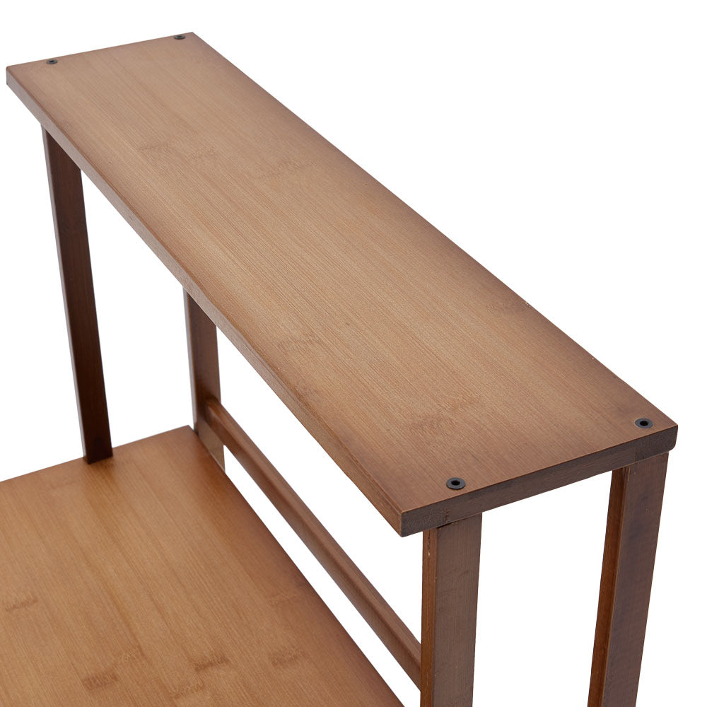 Bring order to your kitchen with this versatile wooden spice rack organiser. It accommodates a variety of kitchen essentials, maintaining a neat and tidy cooking space. Placed on the countertop or atop a cabinet, it maximises the efficiency of kitchen worktop. Wall-mounted design ensures that items remain securely in place, preventing them from slipping through gaps. You can enjoy kitchen time and easily keep it organised, ensuring every cooking session is efficient and enjoyable.