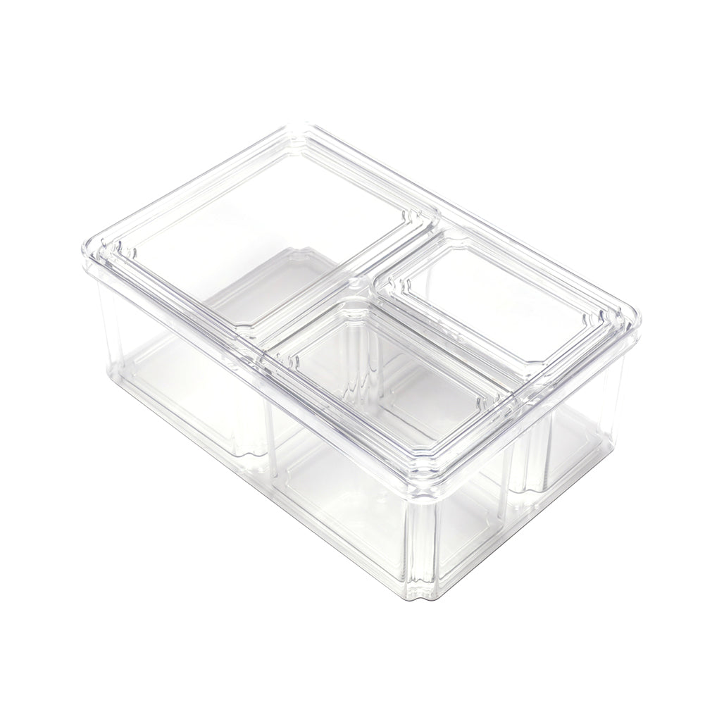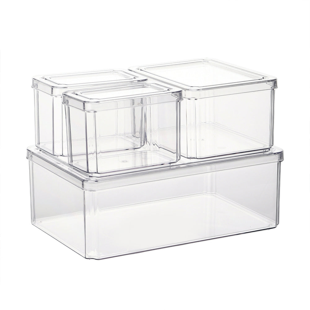Maximize the use of space in your refrigerator with these refrigerator bins, your ideal solution for organizing your fridge. The set includes 1 large, 1 medium, and 2 small bins, all made of transparent PET material. This transparency allows you to easily see the contents, making it simple to replenish ingredients and discard spoiled items. Each bin comes with a lid for a secure closure, ensuring the freshness of vegetables, fruits, and other produce. These storage bins are easy to clean and reusable, making them an environmentally friendly storage option.