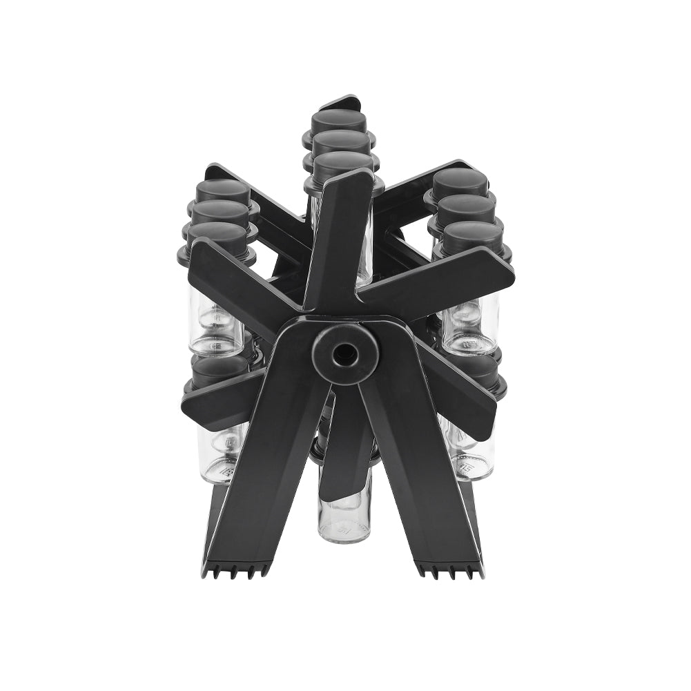The rotating spice rack is designed in the shape of a Ferris wheel to bring a different kind of fun to your kitchen. It also includes 18 glass spice jars for sorting out your spices and keeping your kitchen organized. Comes with cap stickers, it is easy to label your spices for quick identification, while the included funnel helps you pour spices without waste or mixing. It is not only a spice rack for storage but also a unique kitchen display.