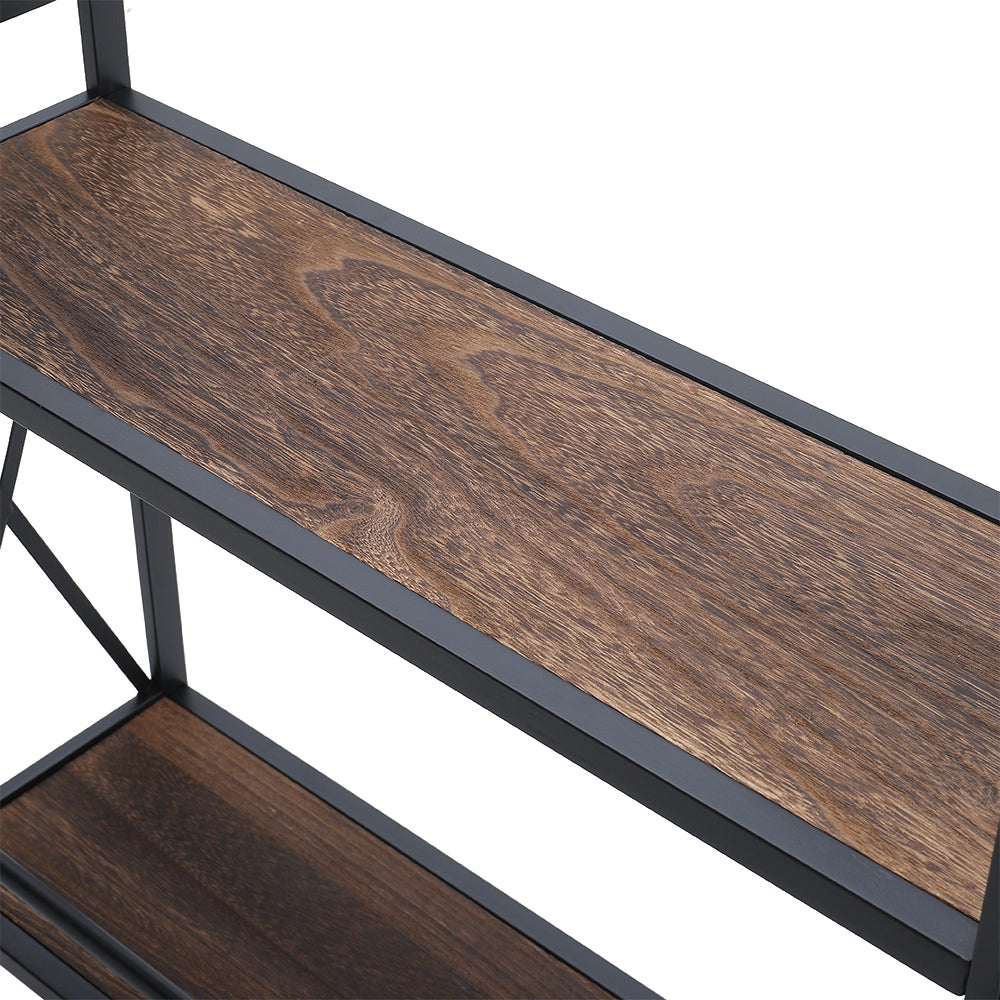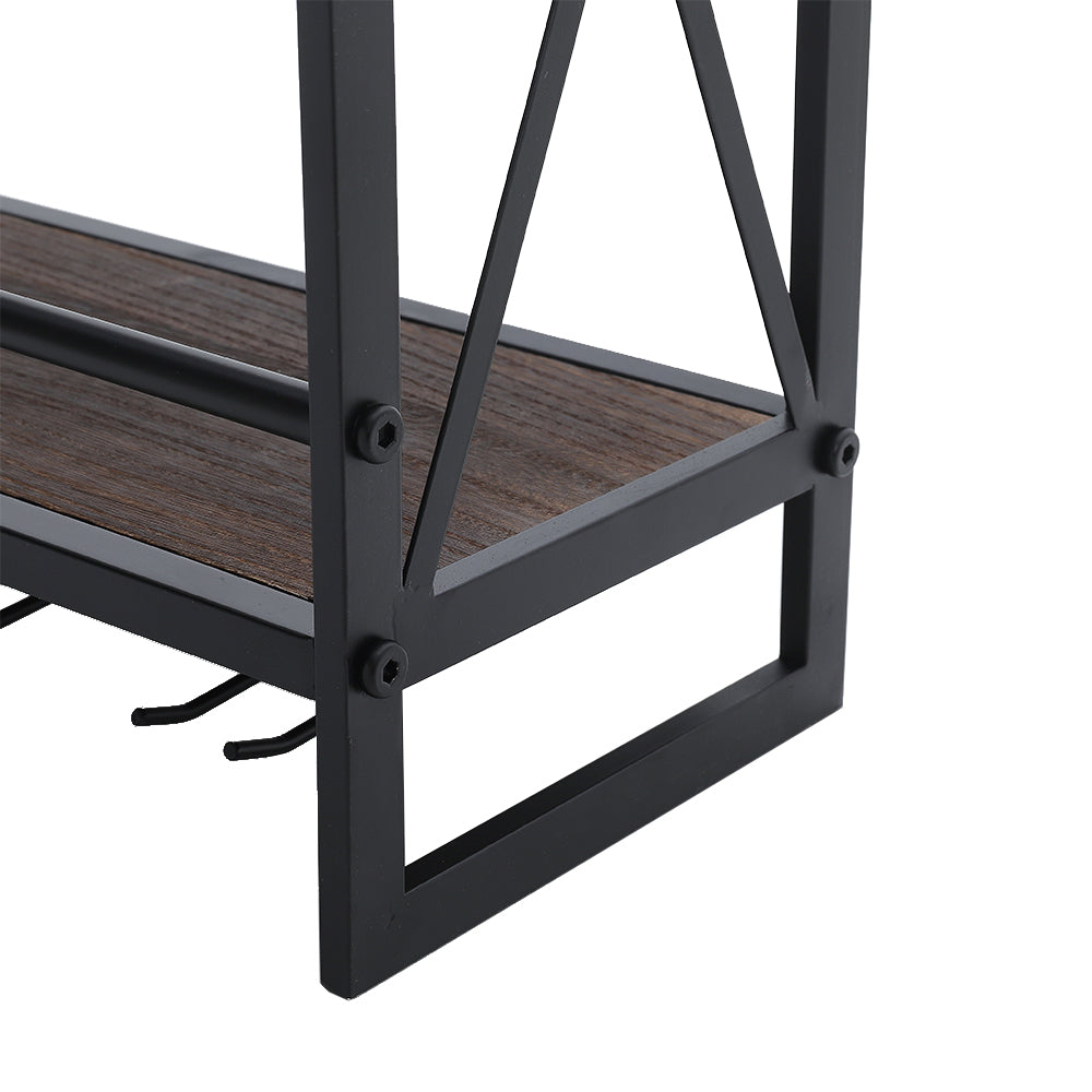 This wall-mounted industrial hanging wine glass rack is a perfect solution to put up the vulnerable wine glass, and mugs in your home. The industrial iron frame makes it more durable and stable, there will be no more worry about your wine glass and mugs falling from this rack. Two layers are made of natural wood, providing a classic sense to your home. What's more, with these two layers, this wine glass shelf gives you plenty of room to store wine, vases, books, and other accessories.