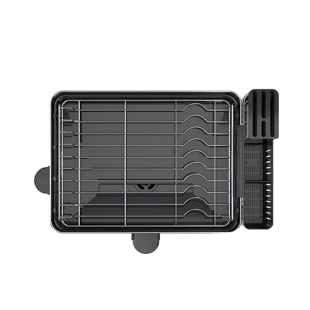 Create a clean and tidy kitchen countertop with this sleek-looking dish drainer rack. The drainer rack is made of premium 304 stainless steel, making it rustproof and durable to fit in kitchen environments. With its smooth surface, the rack is also easy to clean and anti-fingerprints. Features a large capacity, the utensil holder can hold more than 20 pieces of flatware and 4 knives. Comes with a drainboard and a 360° rotatable swivel spout to allow excess water to drain. This dish rack will be the perfect washing-up companion for your kitchen.